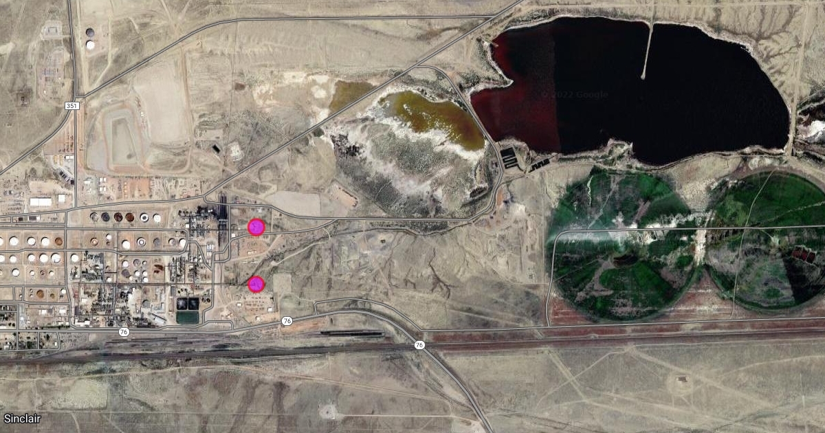 100 Lincoln Hwy, Sinclair, with Two Pipe Flare Stacks in Pink in North and South in Lincoln Sinclair Oil Refinery in lincoln Sinclair Wyoming A53