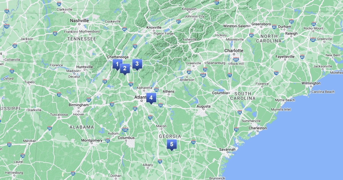 this is a map of the 5 geographic regions of Georgia