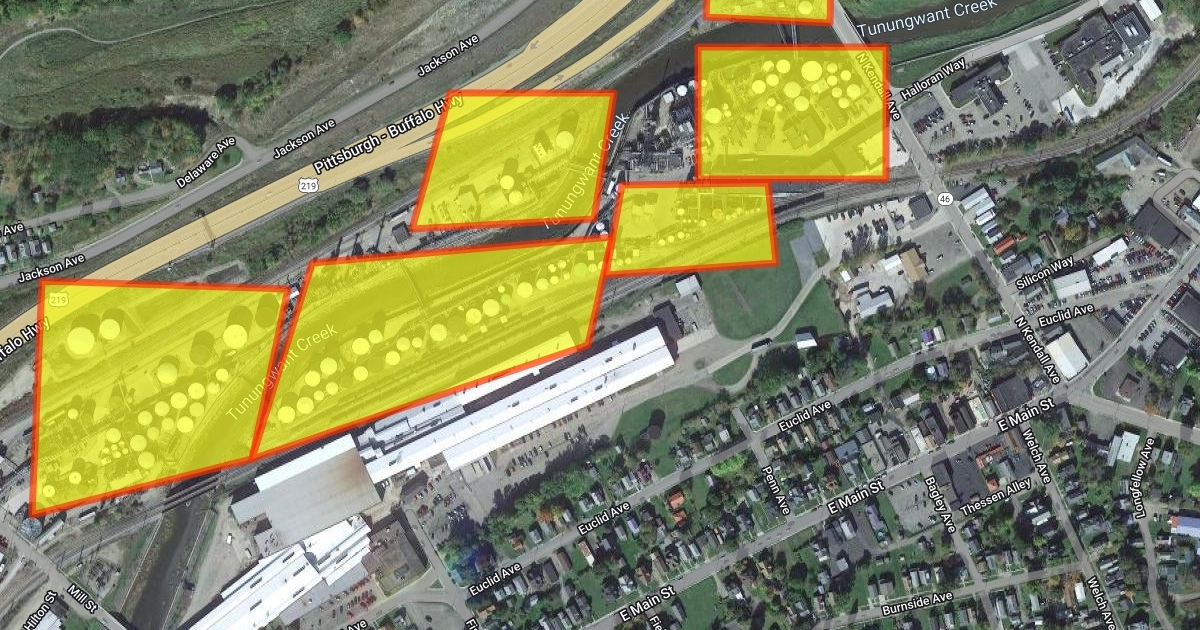 Bradford Refinery Tanks in Yellow in Bradford Refinery in Bradford Pa = Pennsylvania