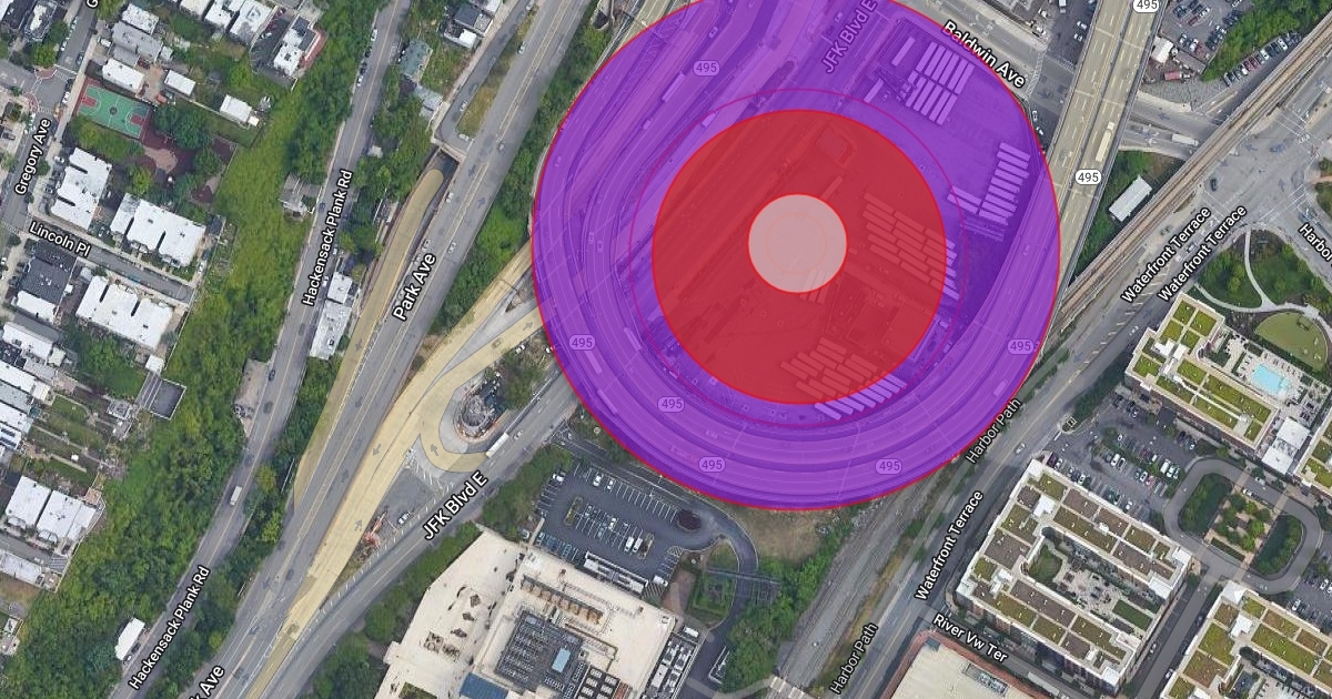 Lincoln blockotewer in New jersey in Purple Circles and Red Circle and White center and lincoln Tunnel