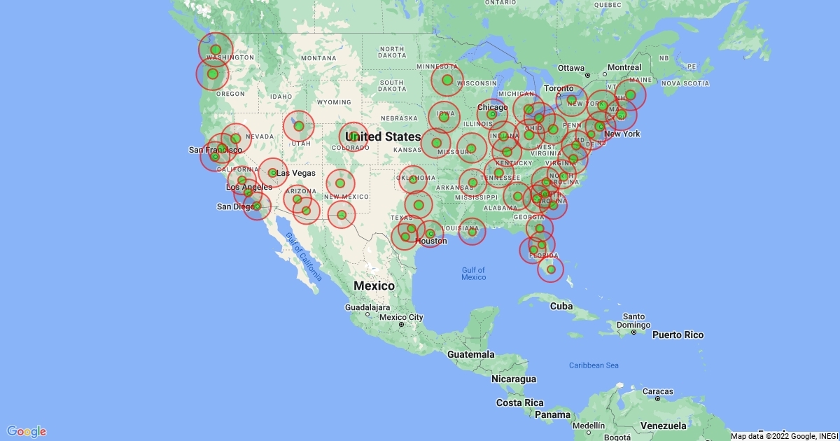 100 MILE RADIUS OF MOST US CITIES