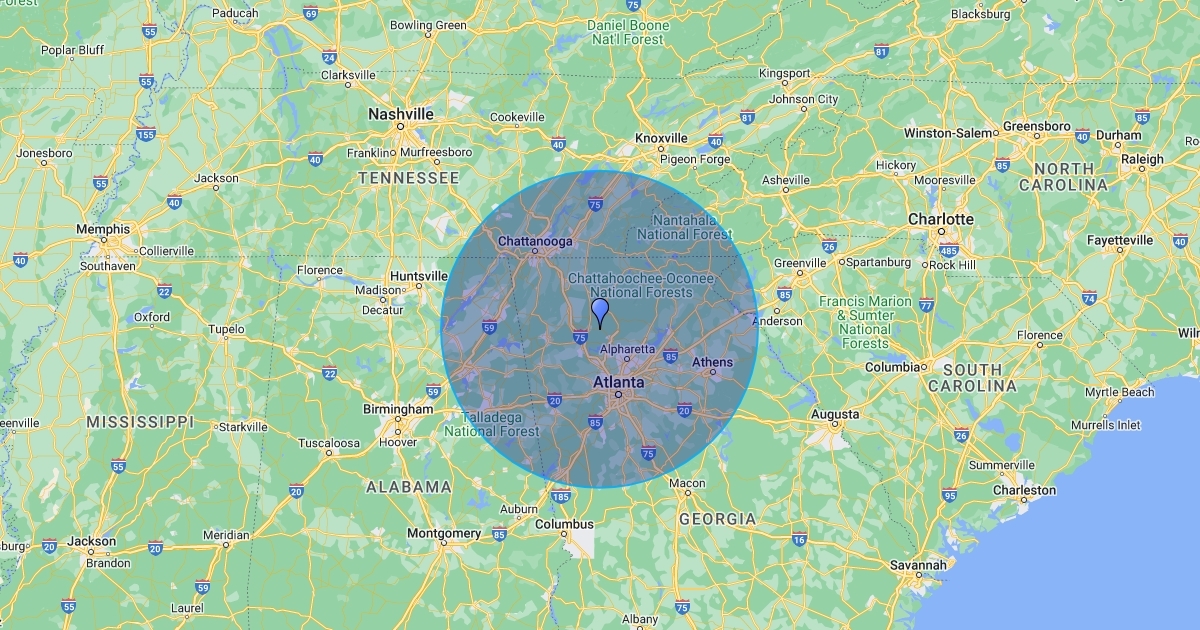 100 Mile Radius Map