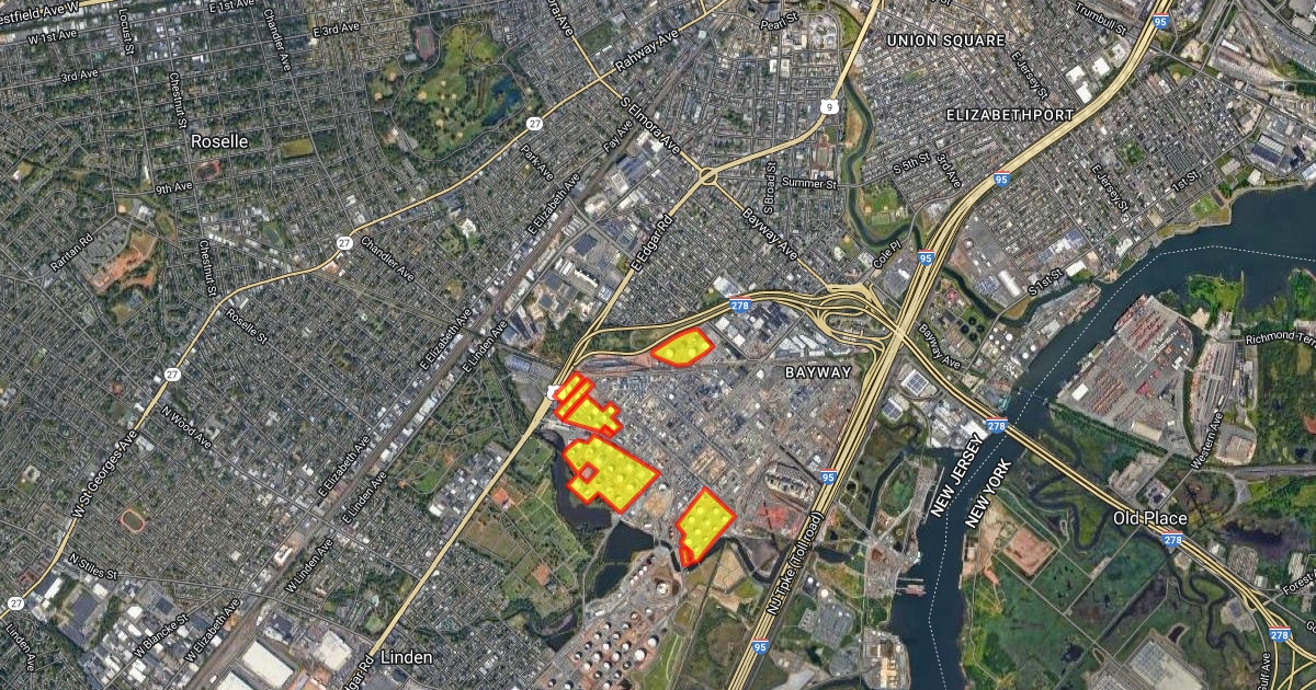 1400 Park Ave, Linden, with Tanks in Yellow in Park Ave Linden oil Refinery in Park Ave Linden New Jersey A71