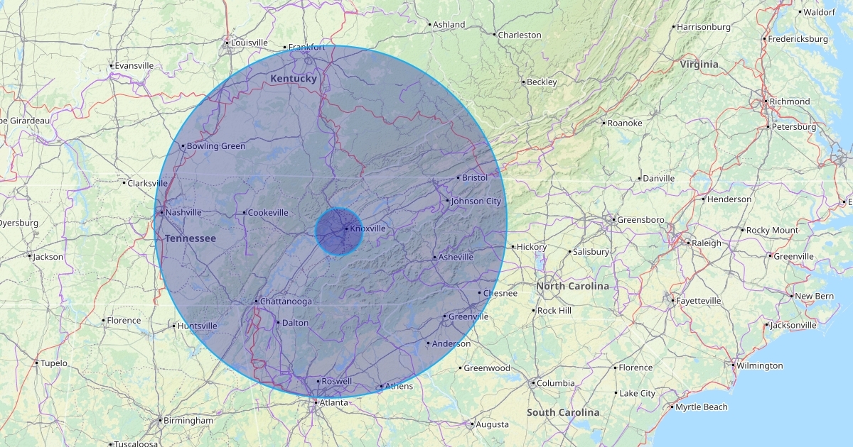 150 mile radius and 20 mile radius in middle