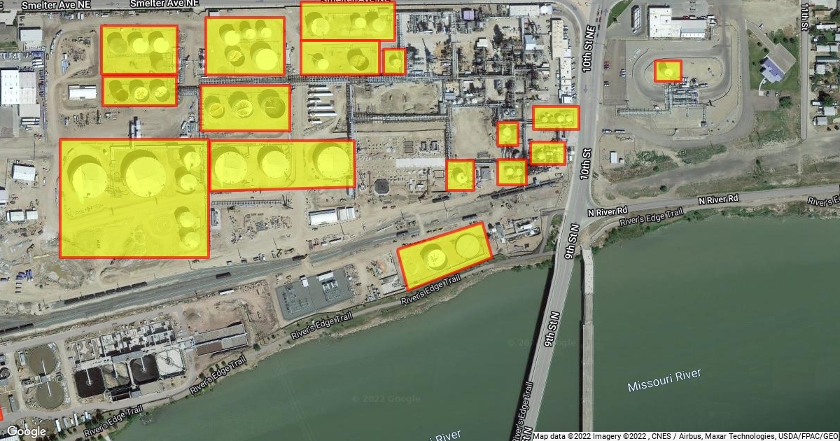 1900 10th St, Great Falls, with Tanks in Yellow in Grate Falls Calumet Montana Refining Refinery in Grate Falls Montana A62