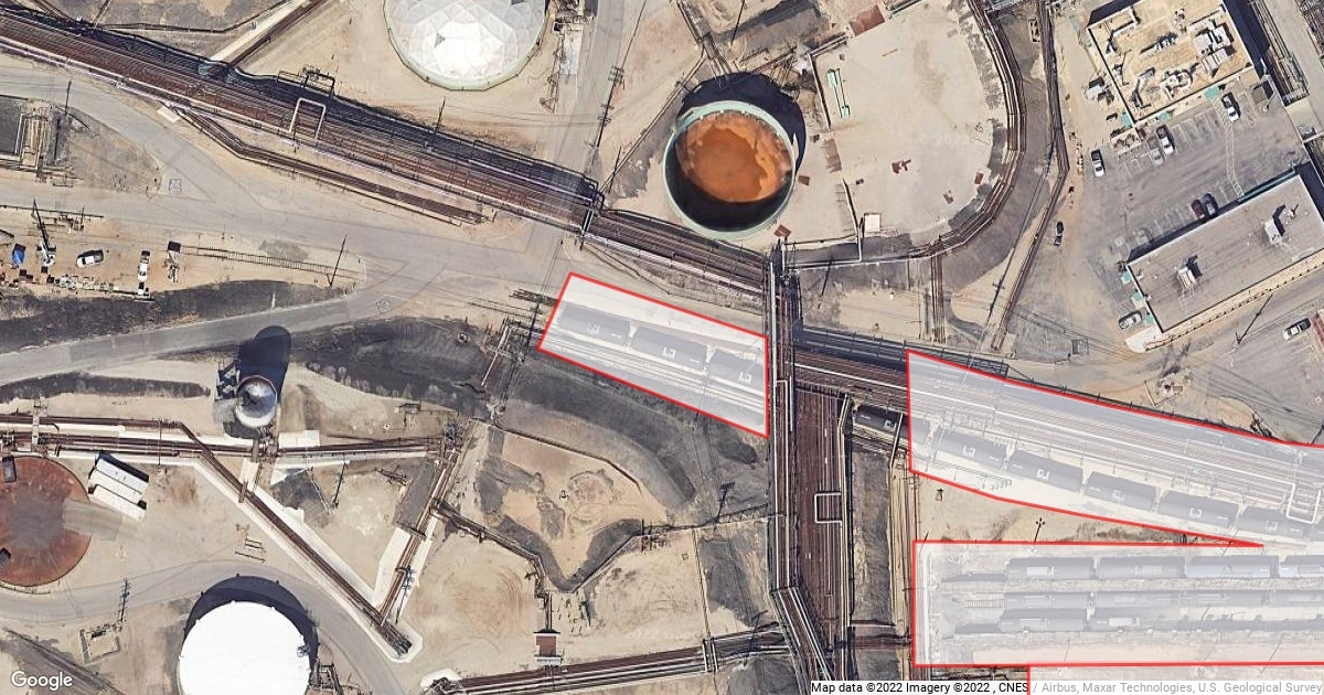 West El Segundo Blvd, El Segundo, with Railroad Fieght Cars in White in El Segundo Chevron Products Company El Segundo Refinery in El Segundo California