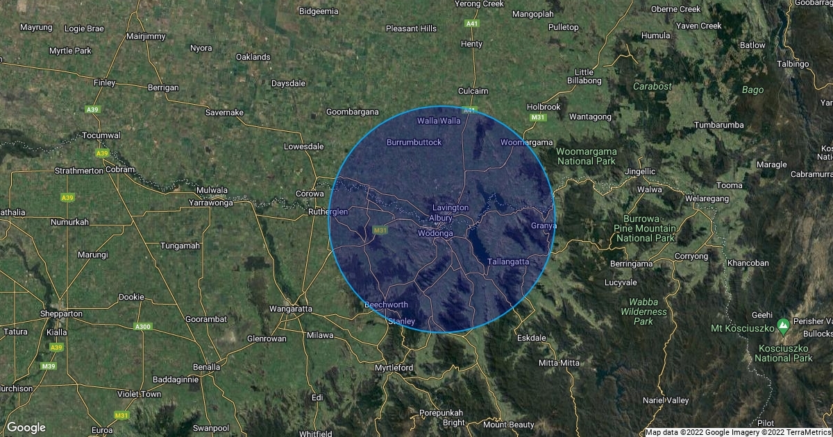 40 km Radius of Albury NSW