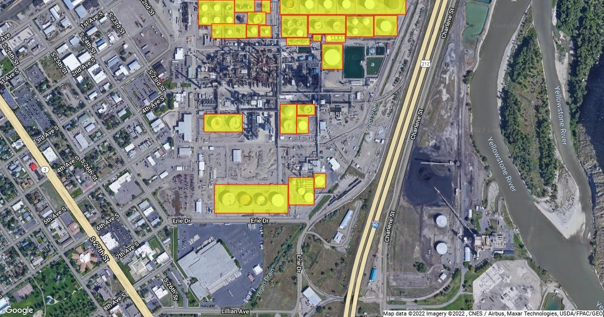 401 S 23rd St, Billings, with Tanks in Yellow in Billings Phillips 66 Refinery in Billings Montana A64