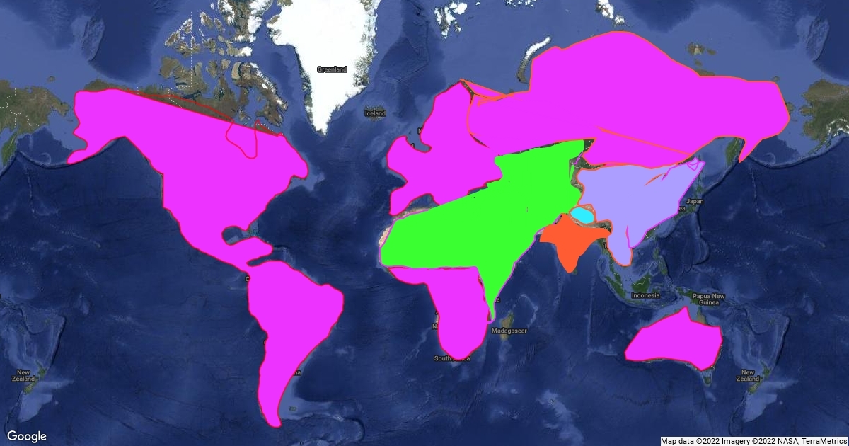 this map shows the location of all 5 major religions.