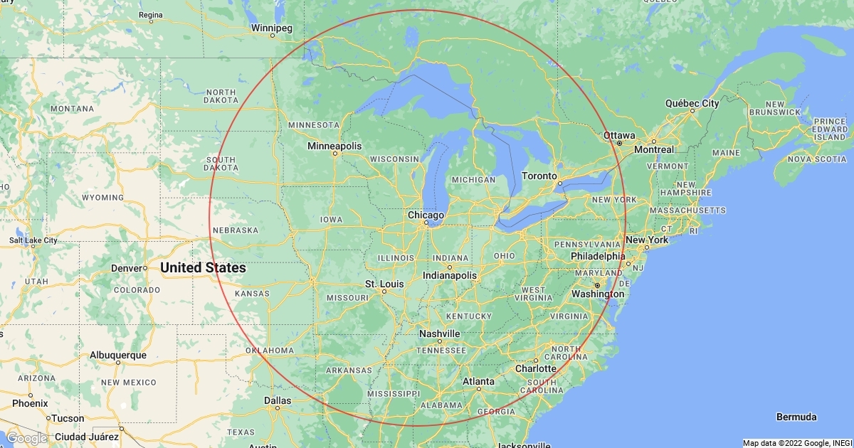 600 mile radius from Chicago