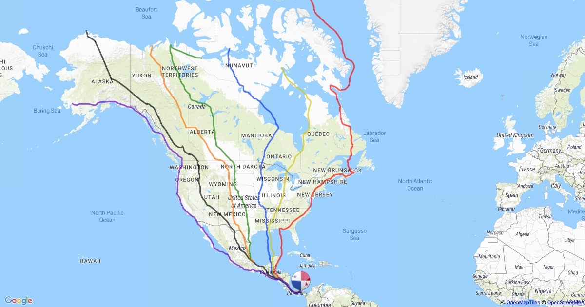 7 paths from northern Canada or AK to Panama