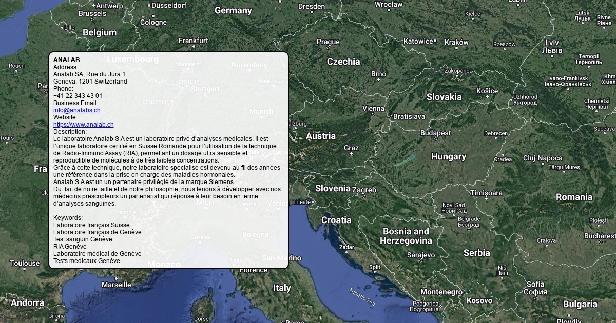 Analab SA, Rue du Jura 1 Geneva, 1201 Switzerland