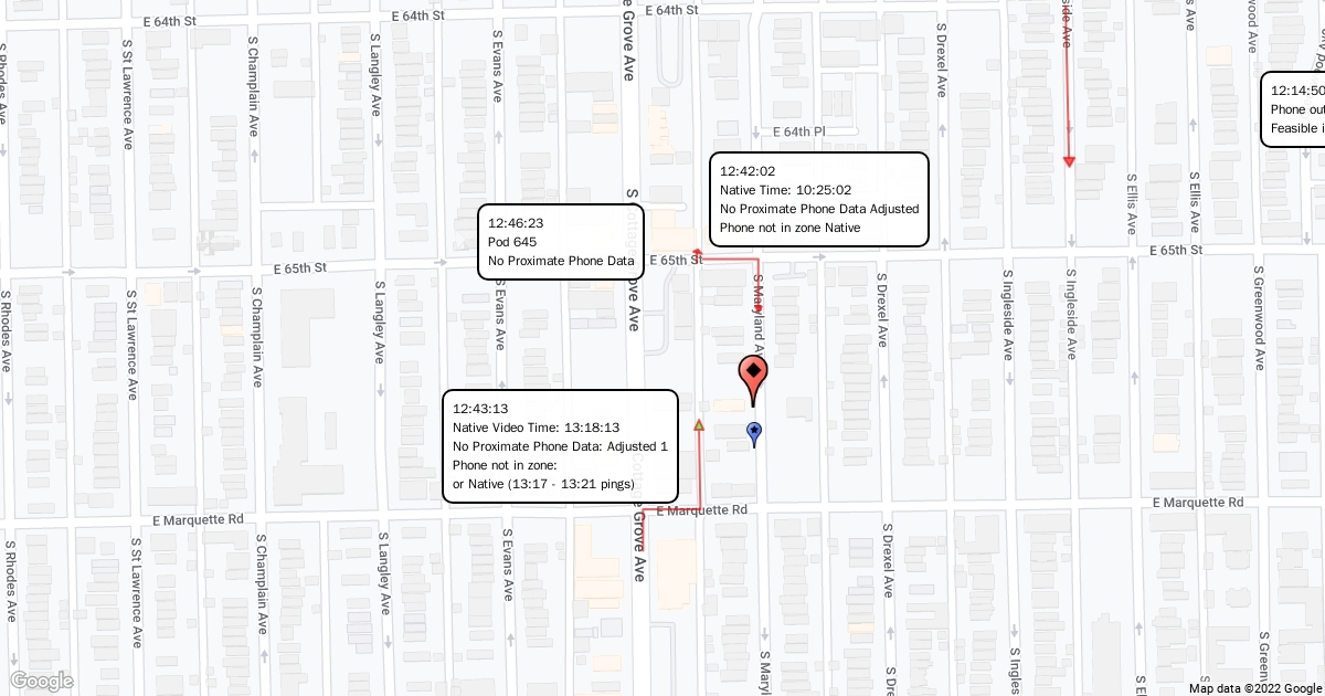 Map with Phone Pings and Adjusted Video Times