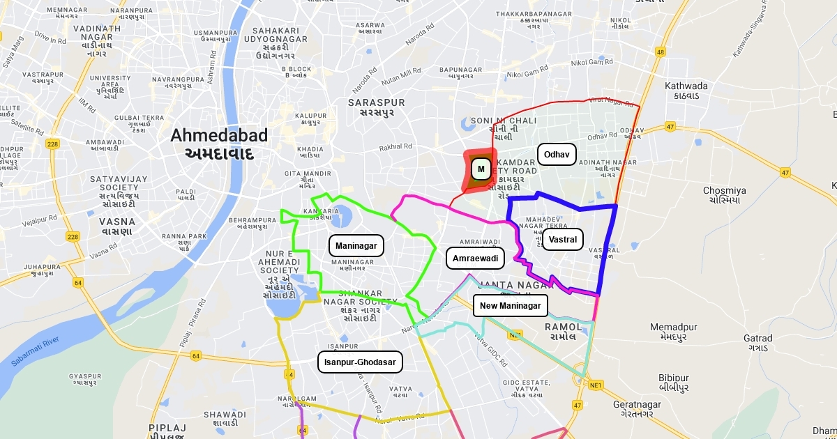 Odhav Narol New Maninagar Maninagar Vatava Vastral Amraewadi Isanpur