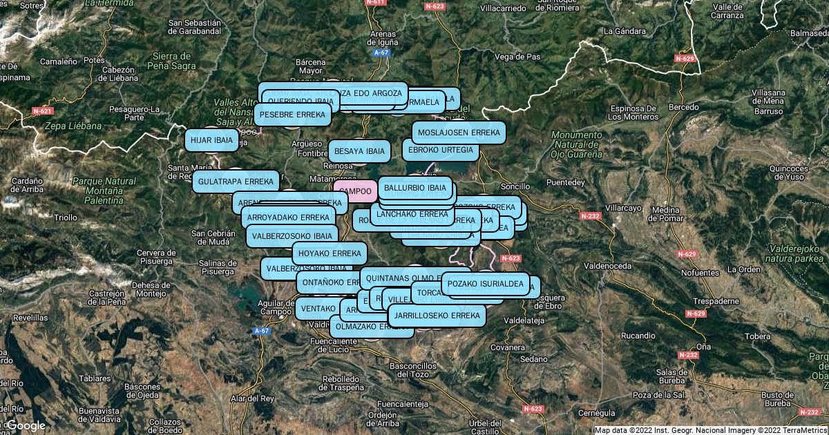 Kantabriako eta Campoo-ko mapa