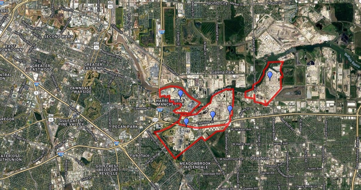 All Six Refineries in the State of Texas Title of three Areas in the State of Texas with Five Markers Each