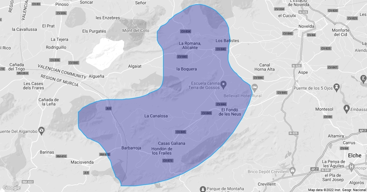 A map of the area covered by the Alma Association.