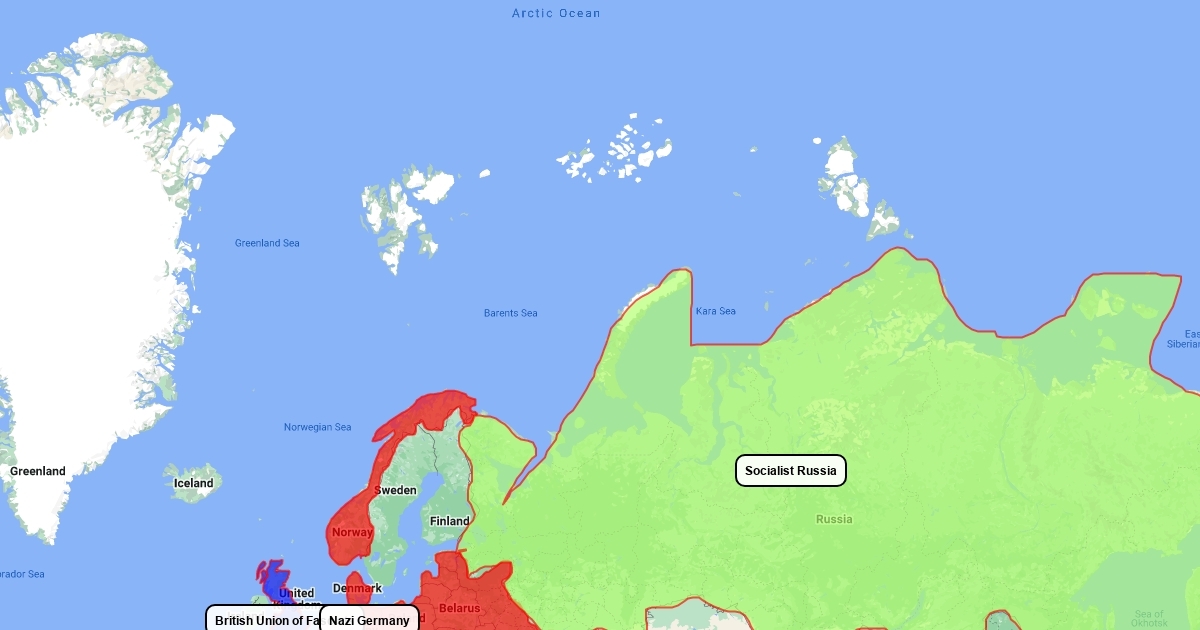 A map of what the world might look like in 1950 if the Third Reich created the worlds first nuclear reactor and the first atomic bomb.