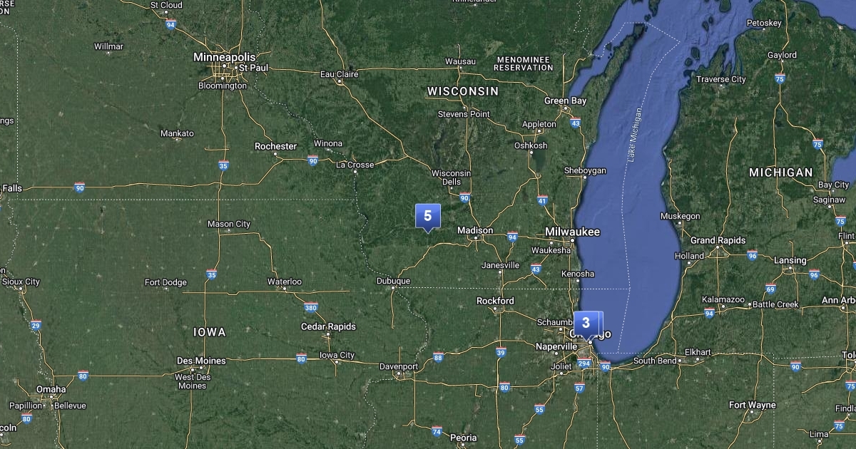 These are the locations of the first half of the book "American Gods"