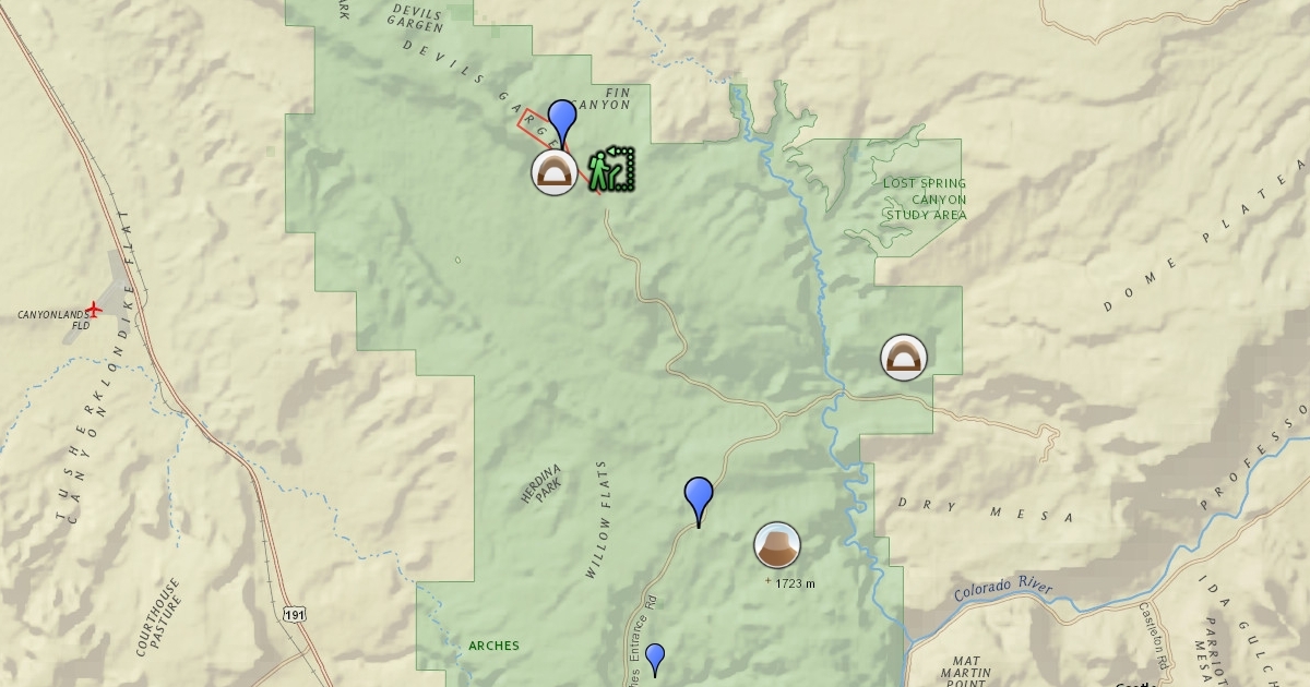 This is a map of Arches National Park in Utah.
