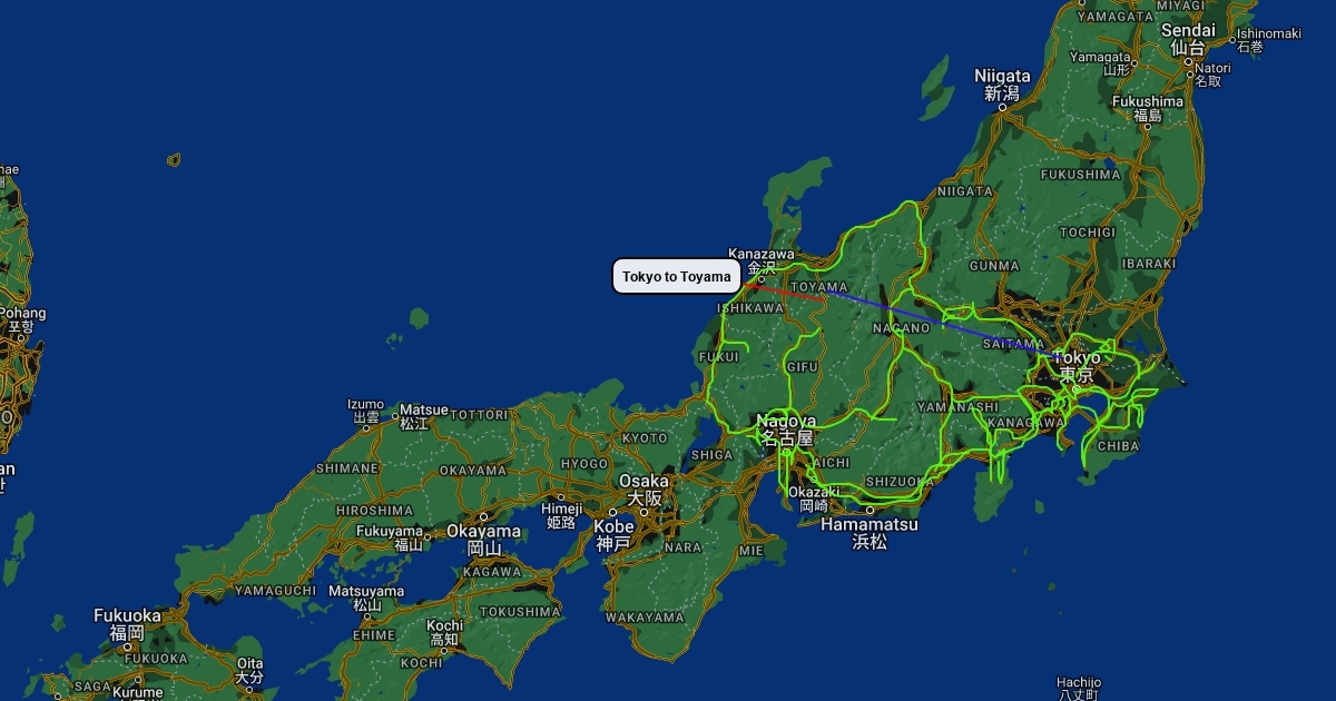 Area around Tokyo and Toyama