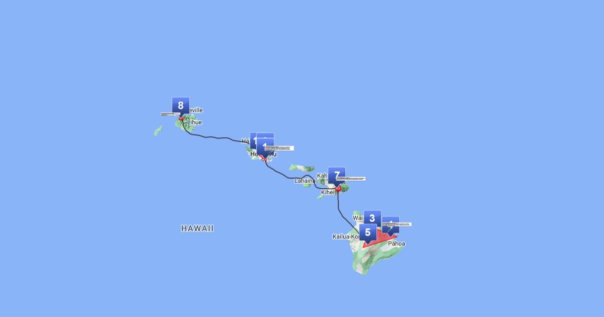 This is a map detailing spots of interest in Hawaii where Astronomy is a key importance and/or relevant