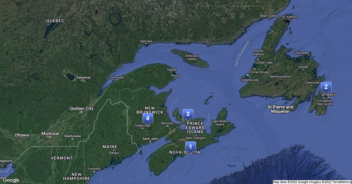Name the capital cities of each province in Atlantic Canada, labeled 1-4