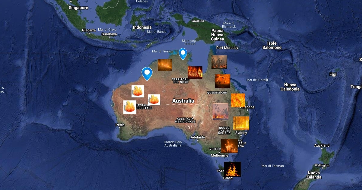 Zone dell'Australia in fiamme