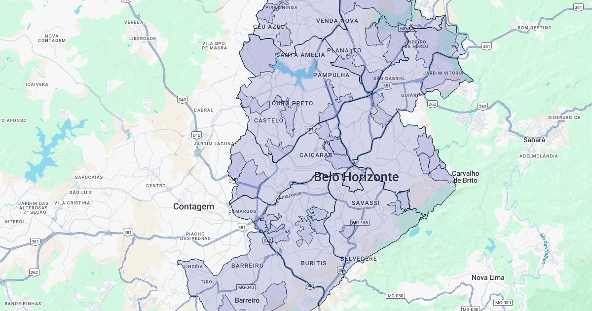 Municipio de Belo Horizonte com Regionais administrativas e Territórios Assistencia Social