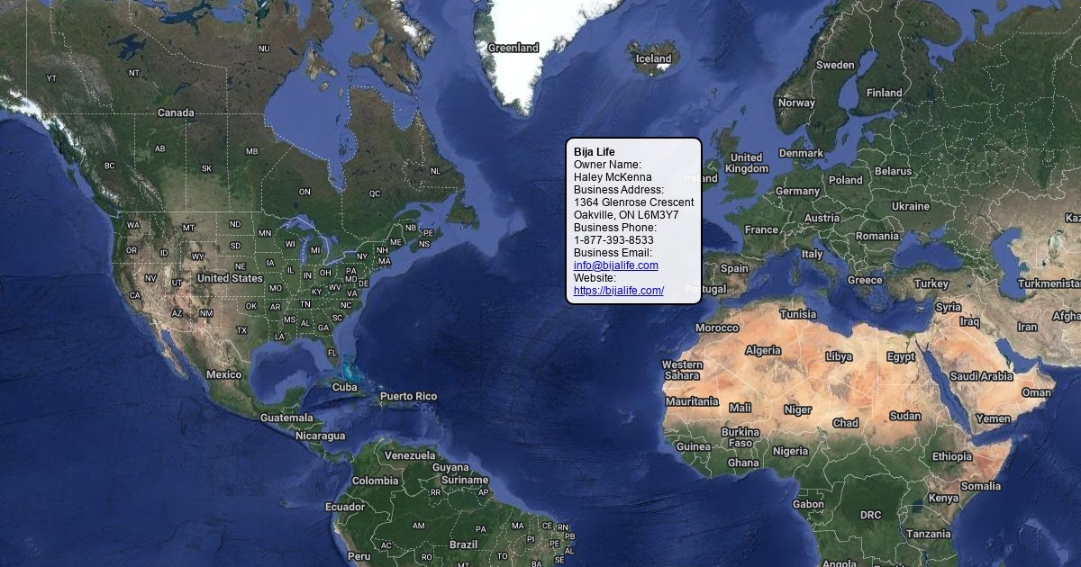 Owner Name: Haley McKenna Business Address: 1364 Glenrose Crescent Oakville, ON L6M3Y7 Business Phone: 1-877-393-8533 Business Email: info@bijalife.com Website: https://bijalife.com/