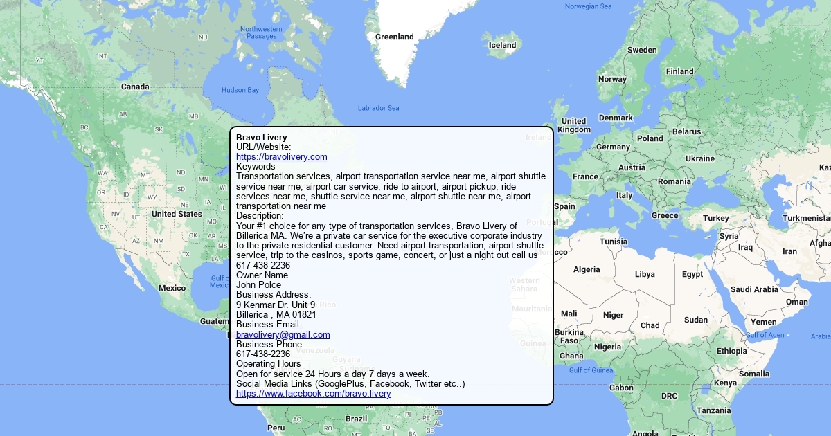 Your #1 choice for any type of transportation services, Bravo Livery of Billerica MA. We’re a private car service for the executive corporate industry to the private residential customer. Need airport transportation, airport shuttle service, trip to the casinos, sports game, concert, or just a night out call us 617-438-2236