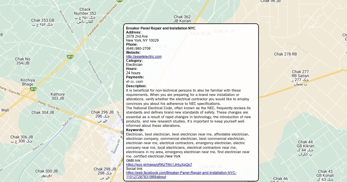Address: 2078 2nd Ave New York, NY 10029 Phone: (646) 980-2706 Website: http://assetelectric.com Category: Electrician