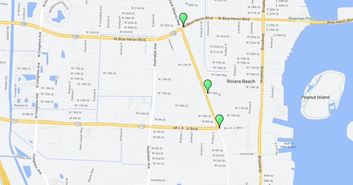 The locations of railroad crossings in Northern Palm Beach County.