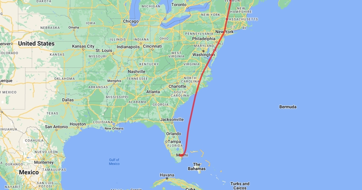 Burlington, Vermont (BTV) to Fort Lauderdale, Florida (FLL)-Flight Path