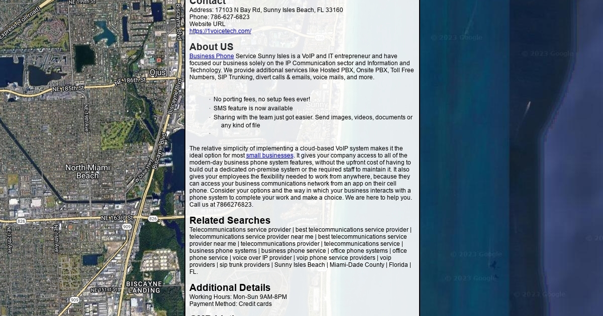 Address: 17103 N Bay Rd, Sunny Isles Beach, FL 33160 Phone: 786-627-6823 Website URL https://1voicetech.com/