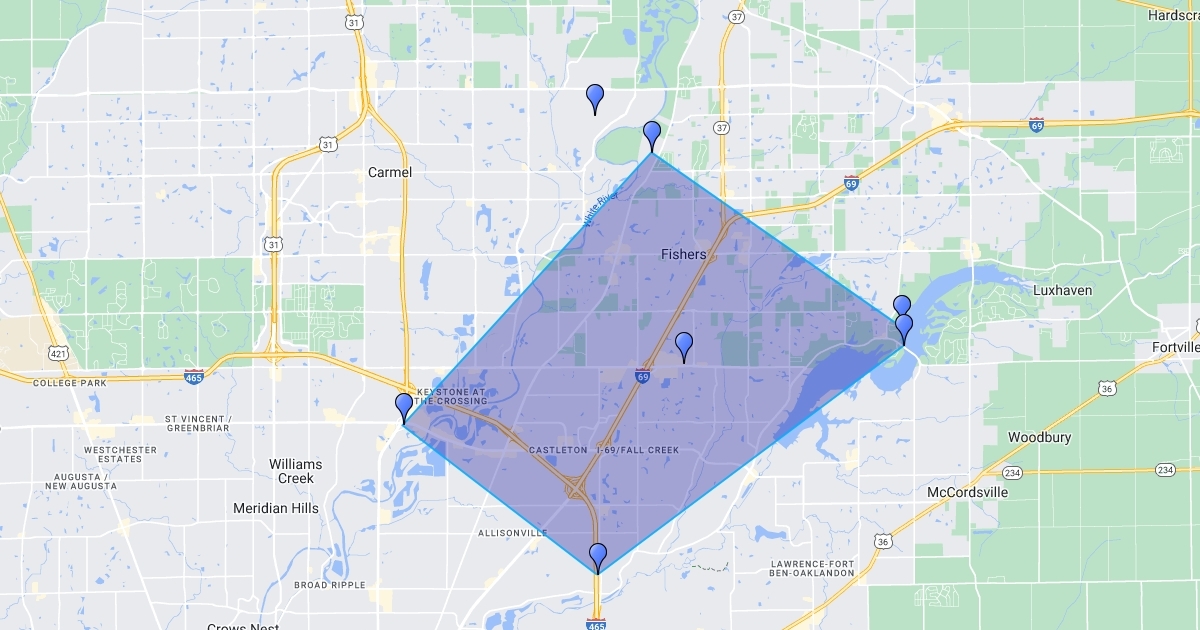 Delivery zone polygon for CPT Fishers, IN.