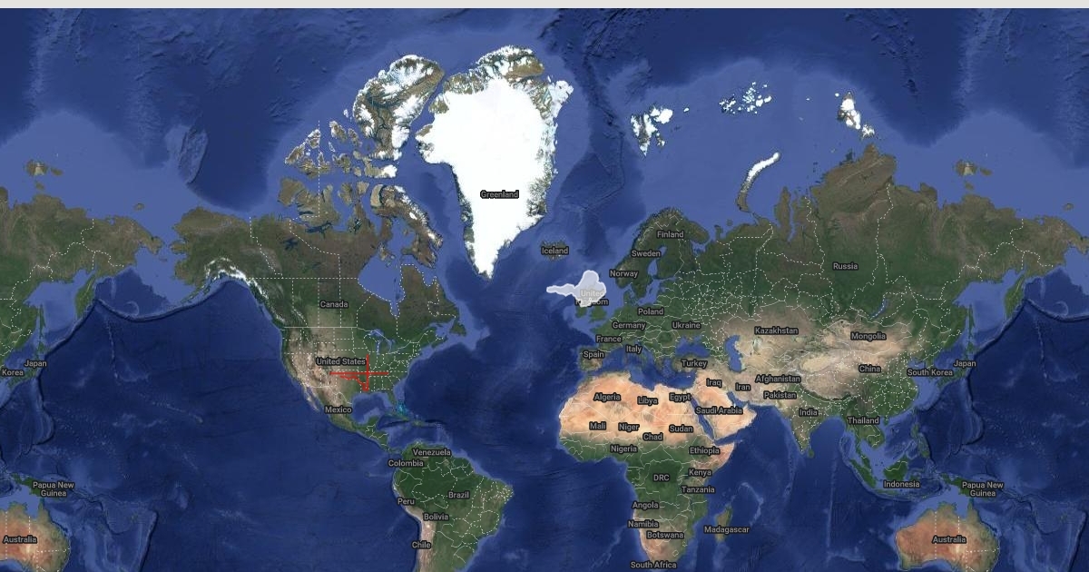 Cafora compared to Europe on it's appropriate latitude