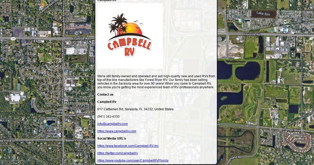 We're still family-owned and operated and sell high-quality new and used RVs from top-of-the-line manufacturers like Forest River RV. Our family has been selling vehicles in the Sarasota area for over 90 years! When you come to Campbell RV, you know you're getting the most experienced team of RV professionals anywhere.