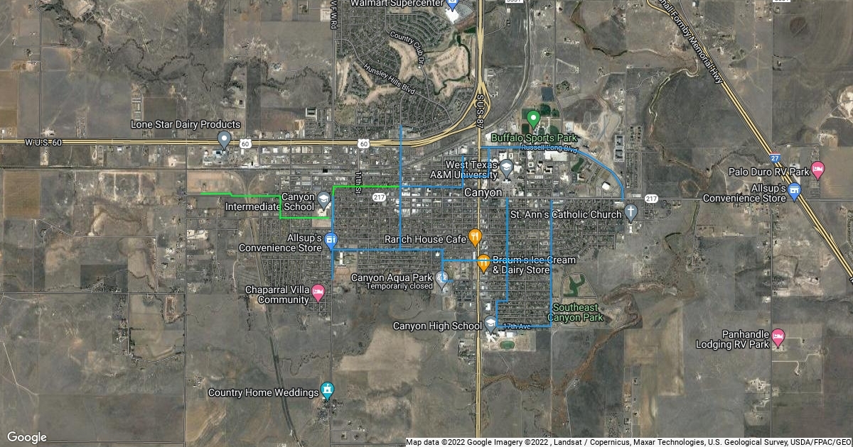 Proposed bike lanes and routes for Canyon, TX.
