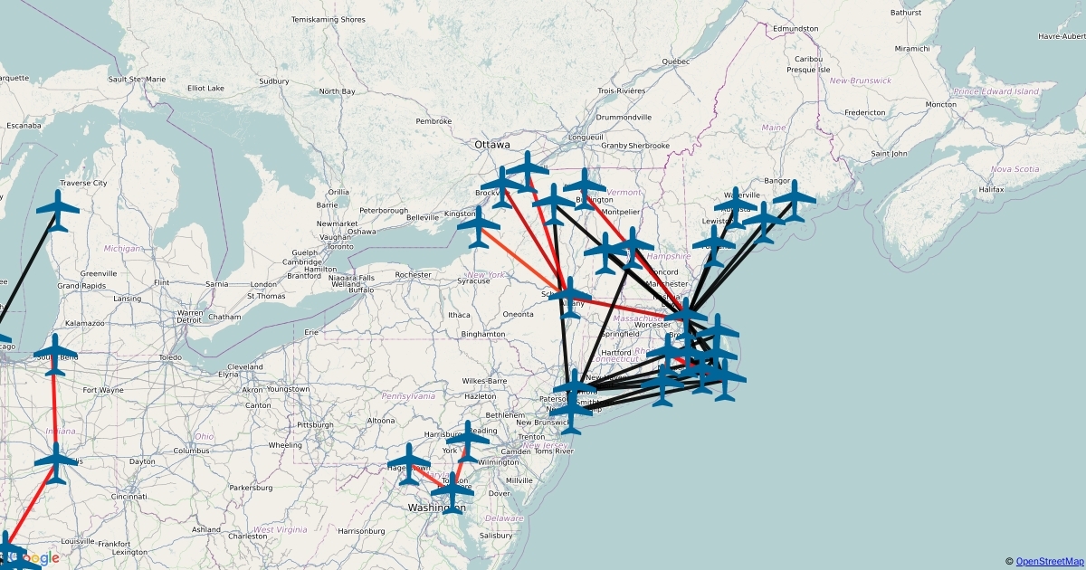 Map of current (and former) cape air routes