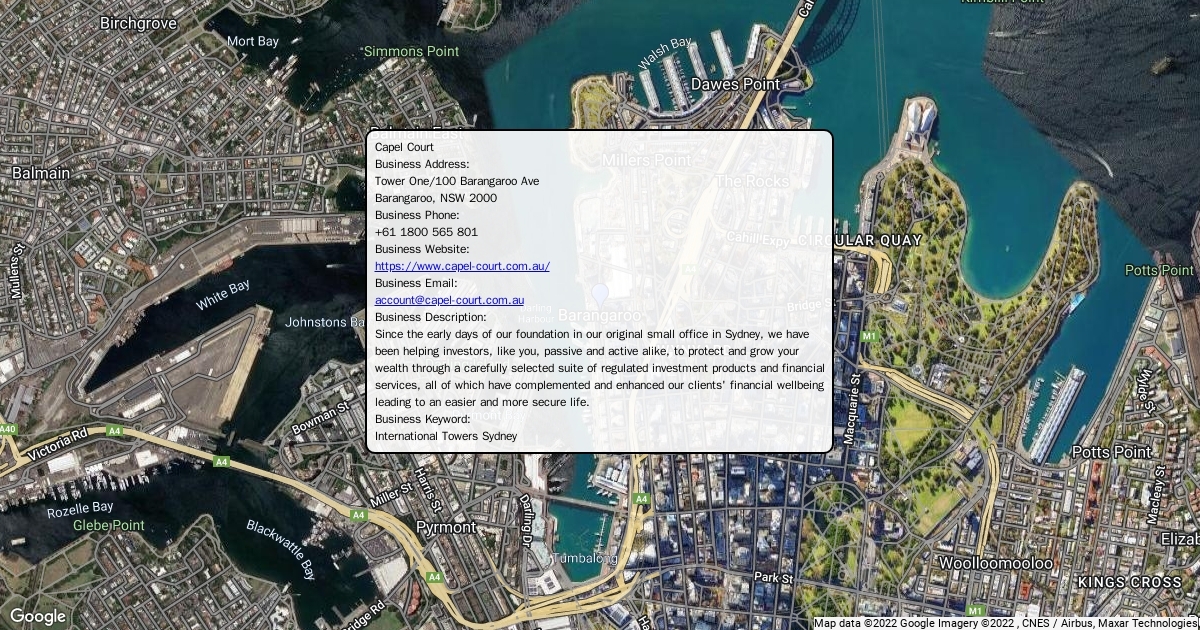 Business Address: Tower One/100 Barangaroo Ave Barangaroo, NSW 2000 Business Phone: +61 1800 565 801 Business Website: https://www.capel-court.com.au/