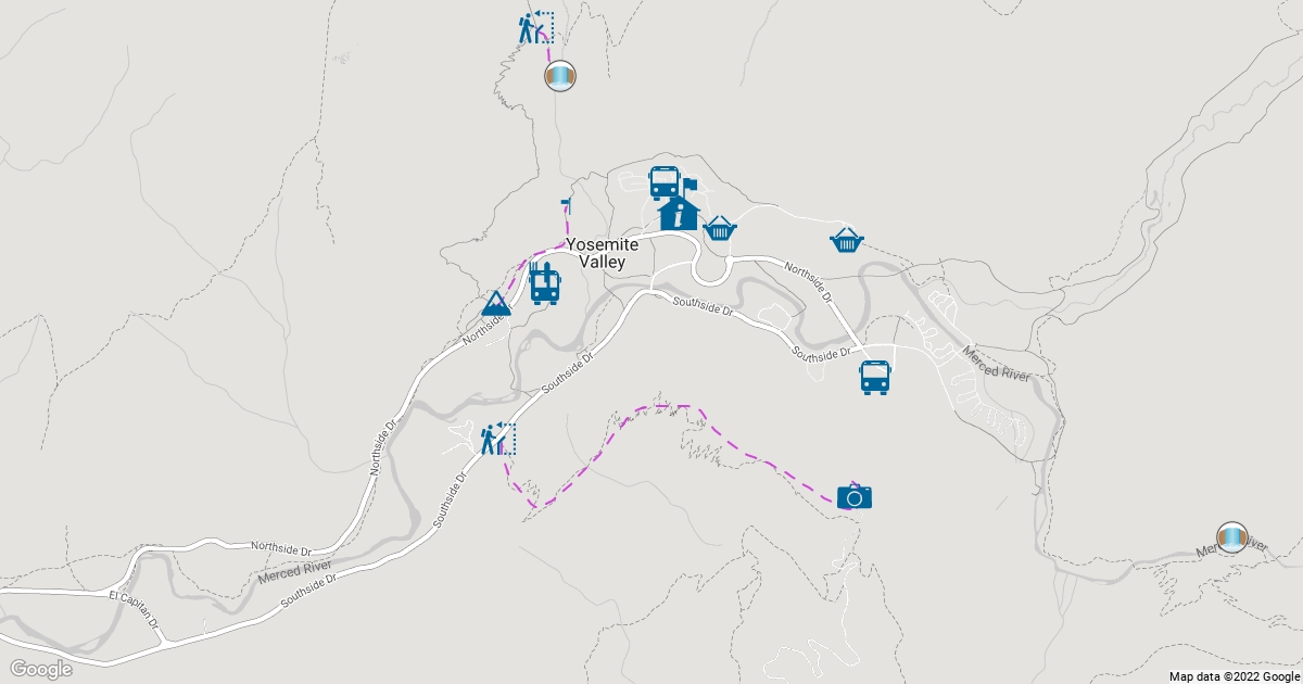 Carte représentant la Parc national Yosemite Valley aux Etats-Unis.