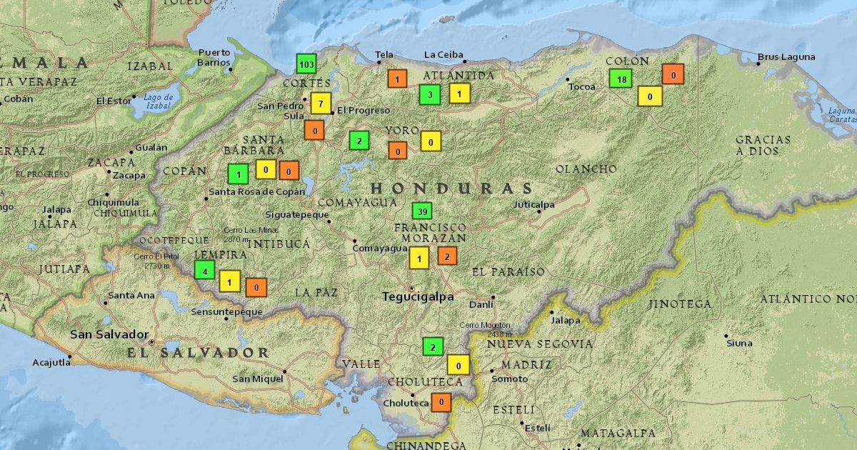 Mapa sobre los casos de COVID-19 en Honduras. Autor: Gabriela Degrandez