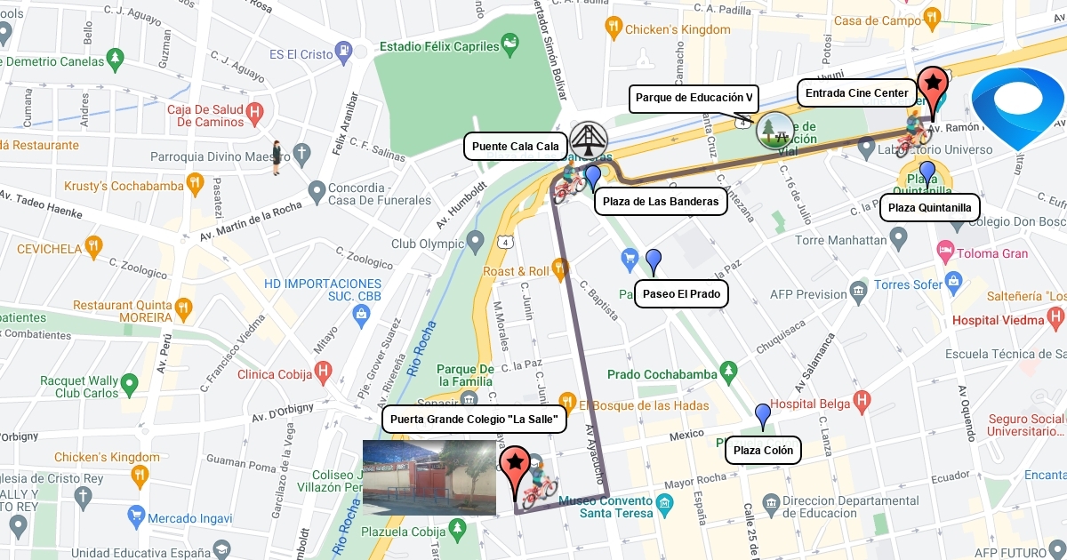 Mapa desde el colegio La Salle hasta el Cine Center