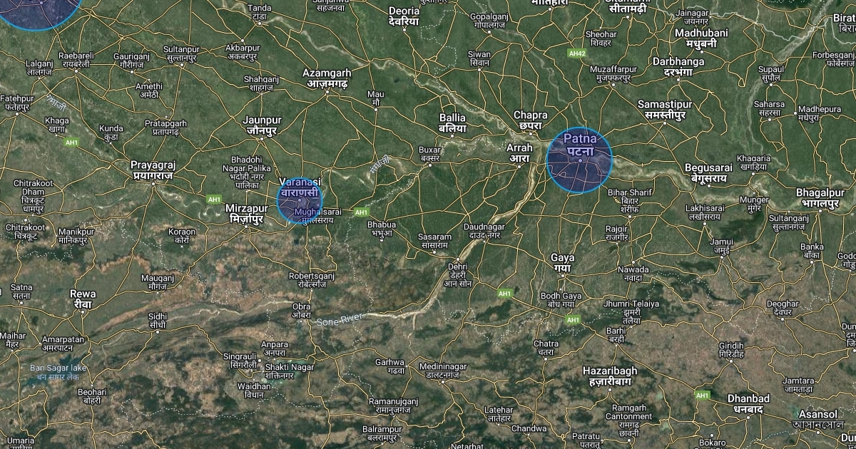 Cities with circles depending on their population