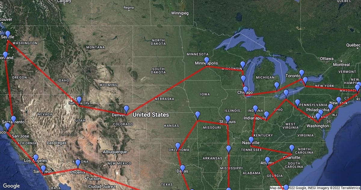 All the cities in USA & Canada with a NFL, MLB, or NBA team