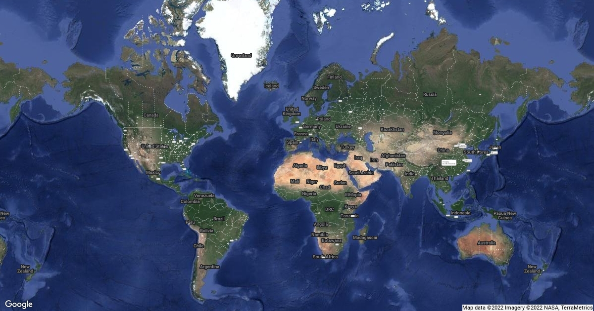 Random cities around the world labeled with name & population