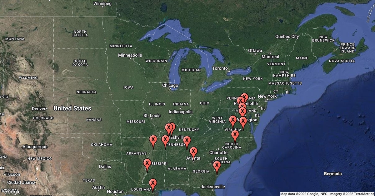 Map of the different Civil War battles.