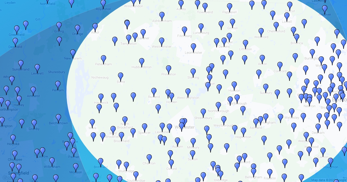 Shows all towns where CHL clients have come from.