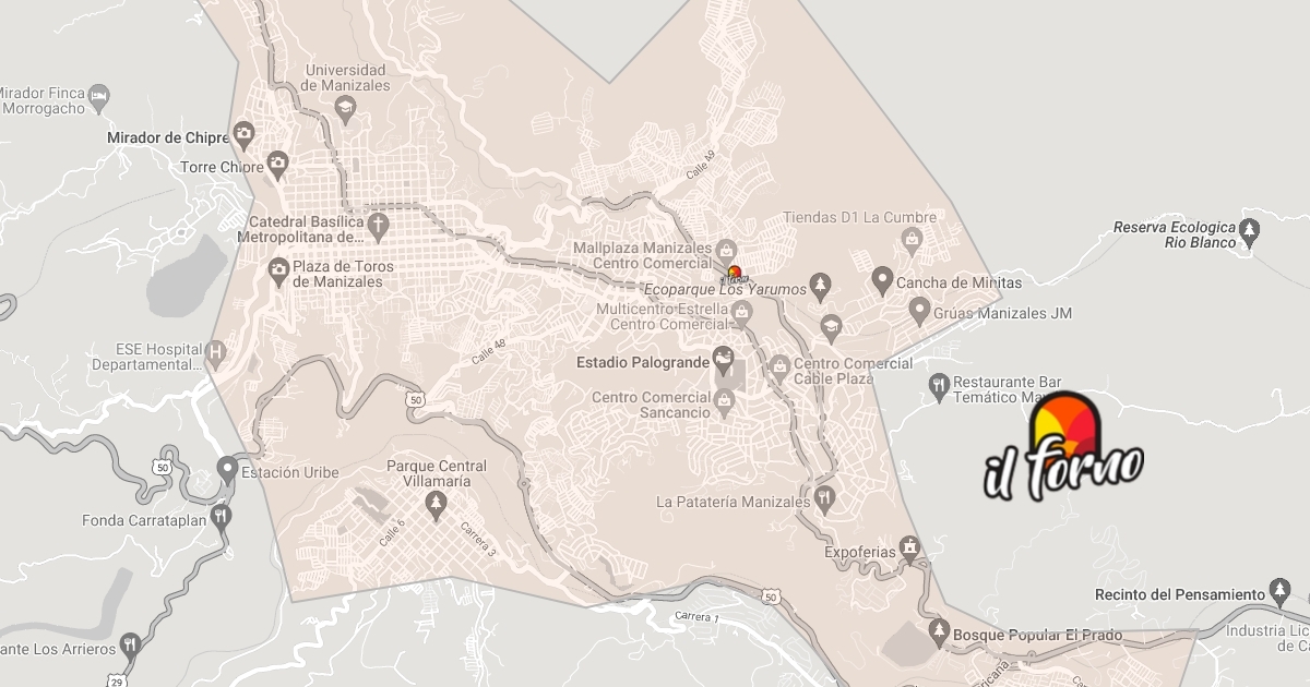 Zona de cobertura de restaurantes il forno en domicilios de la ciudad de manizales - Colombia